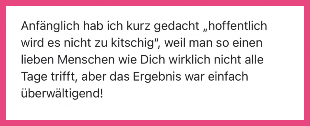 Versteh mich nicht falsch: Wir lieben Eyecandy – fancy Deko, instagrammable Locations & stylische Blumen. Doch bei mir geht es um dein inneres Strahlen und echten Tiefgang. So fügt sich alles perfekt zusammen. Pure you – das ist mein Fokus.